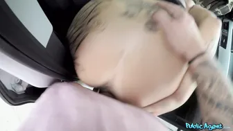 Description: I saw sexy tattooed blonde Mia Blow walking on the side of the road so I stopped my car. She asked me if I was with a rideshare service. I wasn t but I ve always been good at pretending. She hopped in my car and immediately noticed the camera. Thinking on my feet I offered her a 50 discount on the ride which made her more than happy to be filmed. Being that we were both tattoo enthusiasts we got to comparing ink. Her body was covered and I really wanted to see her big boobs. In exchange for a free ride she showed me her tits then I offered to show her my cock. She got right to giving me a blowjob as soon as she saw it. We pulled over and I fucked her tight pussy in the front seat then smacked her big ass in the back. After she came on my cock I dropped a big load into her mouth!