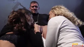Description: When he s playing Detective Drake actor Brad McQueen Ryan Ryder is a total badass but when the cameras stop rolling Brad goes into a strop when they bring in stuntman Marc Rose to film his fight scenes for him. Brad s hiding in his trailer when two of his mega fans Amber Deen and Tina Kay sneak onto the set looking for an autograph leaving Marc to get all the perks of dealing with the hot groupies! Amber and Tina are happy to share Marc s cock in a sloppy blowjob before taking turns riding him and licking each other s pussies and although they may be there to get star Brad s autograph Marc is the one who autographs their faces with his spunk!
