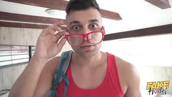 Description: Walking into the Fake Hostel Don Diego sees a lost pair of glasses so he picks them up to find their owner. Walking up to Chloe Lamour Don asks her if she s the owner but she is not. Putting the glasses on out of curiosity Don looks through them to see Chloe s big tits fully naked! Chloe is confused by Don s sudden shyness but later when she stumbles across his glasses realizes he s been spying on her! Seeing Don through the glasses Chloe notices his hard cock throws him on the bed tears off her shirt and gives him a deepthroat blowjob. Teasing Don with her boobs Chloe climbs on top of the stud and rides his cock bouncing her ass up and down on him cowgirl style. Chloe fucks Don doggystyle and missionary then he pulls out and cums on her pussy.
