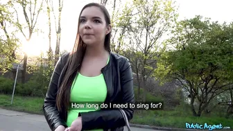 Description: I saw Sofia Lee walking down the road but it wasn t her neon tank top that attracted my eye it was her massive set of tits! I stopped Sofia and made up some story about how I was working on a project looking for talented singers. As we got to chatting I learned that Sofia was 23 from Ostrava here to study and had a boyfriend. That s never stopped me before so I offered her some money to sing for me. She was shy but I told her I would pay her to sing into my microphone and showed her my cock! It took some more money but soon enough Sofia was giving me her best blowjob. Deepthroating my cock must ve turned her on greatly because she agreed to let me fuck her wet pussy! I got my fill then I came all over her big boobs and told her to say hi to her boyfriend for me.