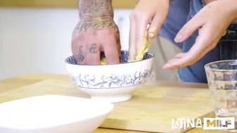 Description: Two hot mamacitas give cooking classes from home to help pay the bills. When muscle bound stud Emilio Ardana shows up to learn the basics the ladies can t help but add sex to the menu. The girls surround him in the kitchen with their crop tops cut off shorts and big boobs and give the studious Emilio no choice but to fuck them hard against the countertops. Citah makes sure her student will be back for more classes with a happy ending that lands all over her face.