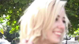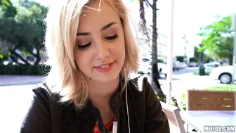 Description: Who said you can t earn money on vacation As Haley Reed relaxed at a cafe this blonde cutie was approached by a horny perv who offered her cash for a flash. With her wad of bills it didn t take long before he was fucking her tight wet pussy!