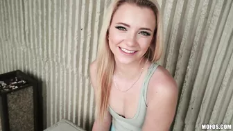 Description: Riley Star is super shy at first but when the cash starts flowing this blonde cutie is totally down to flash her tits and her juicy ass! More money means Riley is licking up a hard dick and stuffing her pussy with a strangers cock in public!