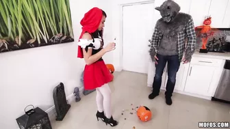 Description: Kharlie Stone has plans to hit up a Halloween party but after she catches sight of her neighbor s big cock this petite brunette gets down on her knees to dole out a blowjob before bending over and having her tiny pussy stretched out.