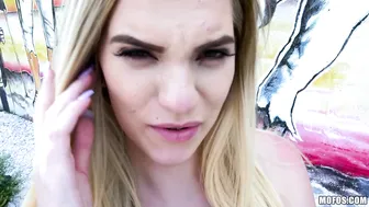Description: Who s down for public sex Crystal Young sure is! This fresh faced American blonde gets nasty with a stranger in public when she s offered fat cash to strip off masturbate her tight pussy and demonstrate her deepthroat abilities!