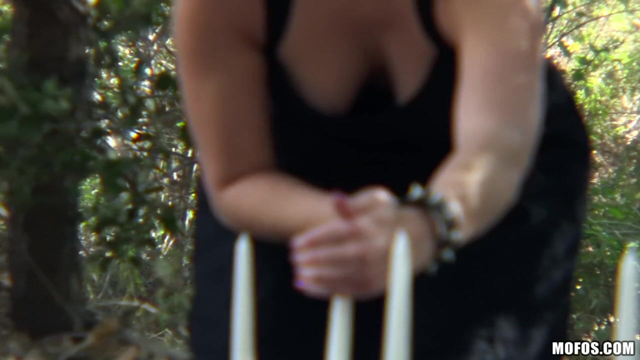 Description: Kate England went into the forest to cast a love spell. After masturbating with a candle the horny amateur spotted a peeping perv with a camera and knew her prince charming had finally arrived to give her the big cock she had been praying for!