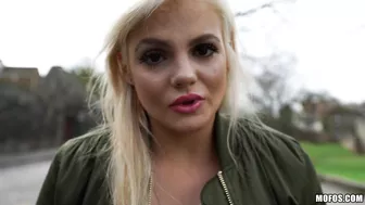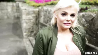 Description: Katy Jayne knows how much her natural G cups are worth! When the hot blonde is approached by a rich pervert she agrees to flash her jugs masturbate and fuck and in the process drains his wallet as well as his balls!