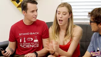 Description: Penny and Leonard are looking to take their relationship to the next level by asking Sheldon to move out so they can have more time together. They order Japanese food to help soften him up then broach the subject. Sheldon takes things more calmly than they were expecting but he does bring up their roommate agreement. When they moved in together Leonard signed an agreement stating that if he asked Sheldon to move out over a girl Sheldon would get to have sex with the girl while Leonard watched. Penny agrees. Sheldon lets Penny know that per the roommate agreement she must start with fellatio while Leonard watches. She obediently pulls out Sheldon s dick and starts sucking. Then she peels off her mini skirt and thong and climbs onto Sheldon s dick to ride him right in front of Leonard. Penny may not want Sheldon to live with her but she sure does love the way his cock feels buried inside her meaty pussy. Getting onto her hands and knees Penny rocks back into Sheldon s strokes. She can t get enough of him so she rolls over and spreads her thighs so he can keep on dominating her. Making dominant eye contact with Penny Sheldon cums in a creampie that leaves Leonard pissed about his friend s motivation. Sheldon tries to explain that it s revenge for a dream that Amy had leaving Leonard frustrated that Sheldon can t tell a dream from reality. Show More