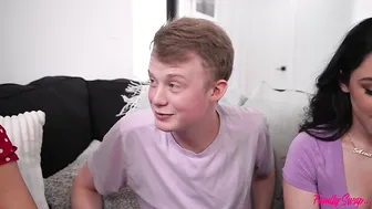 Description: Myra Moans has a sexy new outfit that she can t wait to show her long distance boyfriend. Between the sexy little top and the miniskirt it s clear she s not wearing any underwear. She s having a good time but her stepbrother Nick Strokes walks in and is obviously sad. Still connected on the video call Myra goes to see why Nick is so blue. Nick confesses that he s been having an awful day. Myra suggests some bestie head to cheer him up. It doesn t matter that they re stepsiblings Myra will never date Nick but she wants to make him feel better. Myra seals the deal by showing Nick her boobs and then having him lay down so she can deliver one hell of a BJ. Nick is no fool he knows he s on video call as he lets Myra ride him in reverse cowgirl and then in cowgirl. He pulls out long enough for Myra to get on her knees then slams back home in doggy. Even as Myra gets on her back so she can have Nick finish her off she is still making eyes at her boyfriend on the phone. Once Nick has blown his load Myra asks her boyfriend if he enjoyed watching.