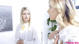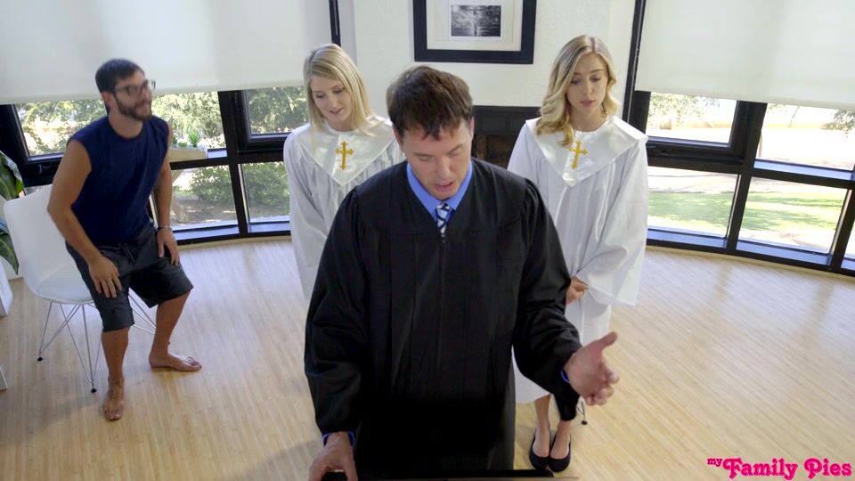 Description: Haley Reed and her stepbrother Logan Long have both been ordered by the choir director to practice their singing even though Logan is more interested in playing football. Deciding to cause trouble Logan gets on his knees behind Haley and lifts her gown so he can finger bang her landing strip fuck hole. When the choir dad catches Logan in the act he tells him to sit in the corner and wear the sinner dunce hat. Not to be dissuaded Logan gets up and goes right back to Haley as soon as the choir dad s back is turned. Soon Haley is on her knees while Logan pounds her creamy fuck hole from behind. When Logan takes a seat on the chair Haley is happy to slide down on his fuck stick until she s fully impaled. Her hips bump and grind while the choir dad remains oblivious. As she reaches down to rub her clit and make herself cum it becomes a challenge to keep up with the song that she s supposed to be singing without letting on that she s about to climax. Sitting down on the chair Haley spreads her thighs and invites Logan back into her tight fuck hole. This time he doesn t let up after getting his lover off. As he s in the process of filling Haley with a creampie of jizz they once are caught once again by the choir dad who orders them both to cleanse themselves and meet him in the confessional.