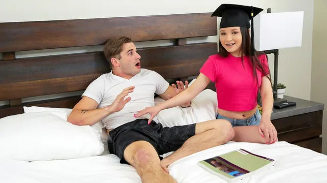 Description: Rosie Riches has graduated high school and she couldn t be more proud! She refuses to take off her graduation cap even wearing it as she goes to make her stepbrother Nathan Bronson a sandwich. Rosie brings the sandwich in to Nathan and then lets him know that as his older sister she needs to look out for him for all his needs. She insists that the last time they fooled around she noticed something on Nathan s dick and since his dad had skin cancer she s worried. Nathan finally agrees and whips it out for Rosie. As Rosie is peering at Nathan s fuck stick she realizes that he s getting hard. With a flash of her small boobs she easily convinces him to let her help him with his needs. Her mouth is hot with the slightest edge thanks to her braces as she sucks Nathan off. Stroking the root as she blows the tip Rosie gets Nathan way too hot and bothered to want to stop now. Bending over on her hands and knees she waggles her pert ass in front of him and then hops on top or a stiffie ride on his hardon. Giving in to his stepsister s needs is as hot as ever for Nathan who can t keep his hands off Rosie s bottom as she rides him. Turning around on her hands and knees Rosie invites Nathan to give it to her once again. He delivers the doggy style pussy pounding she s craving. When Rosie rolls over he goes to town on her greedy snatch. When Nathan is ready to cum he tries to pull out and Rosie wraps her legs around him to keep him buried inside. She gets the creampie she s been jonesing for then promises to take care of Nathan and the baby if she gets pregnant.