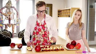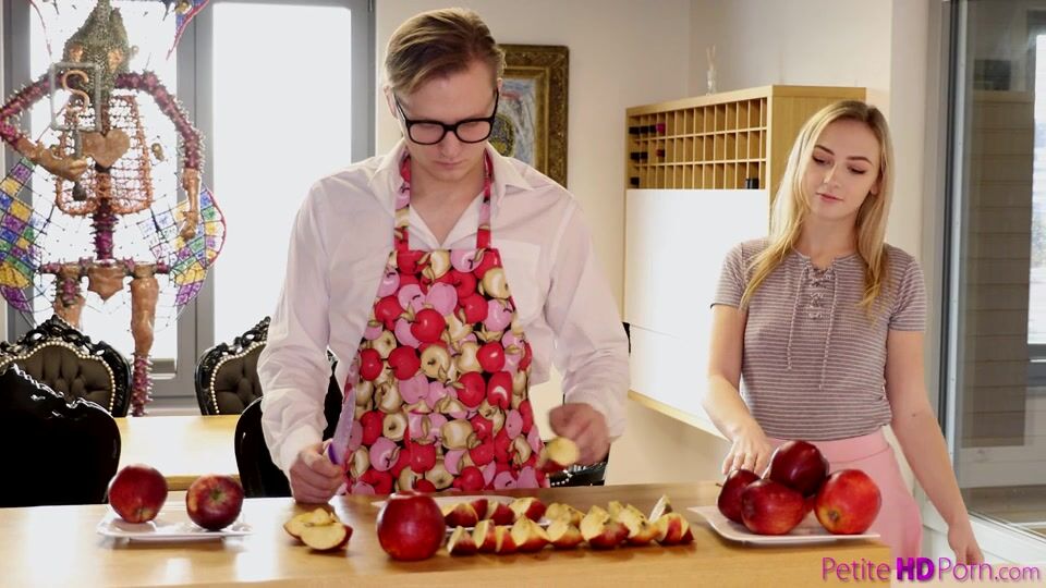 Description: Stanley Johnson is in the middle of preparing apples for a pie when his stepsister Jenny Wild walks in and sees what he s up to. Grabbing one of the apples Jenny contemplates it for a moment before she hops on the counter to nibble at her snack while Stanley keeps chopping. Feeling a little bit hot and bothered at the sight of her bro in an apron Jenny eventually sets the apple aside and spreads her thighs so she can taunt him with the sight of her rubbing her clit above her panties. Stanley can t resist the treat that Jenny is offering him. He drops the knife and falls to his knees so he can bury his face between Jenny s thighs. Her sweet cream is better than any dessert Stanley could make as he feasts on her treat. Tugging Jenny down to her feet Stanley gives her a kiss so she can taste her own essence then urges her to the bed so she can start sucking his dick. With Stanley on his back it s easy for Jenny to climb on top for a stiffie ride. After some reverse cowgirl action she gets on her hands and knees. Her doggy style pussy pounding goes on until she winds up on her back with Stanley sunk all the way inside. He finishes Jenny off then watches as she strokes his fuck stick until he nuts in her mouth.