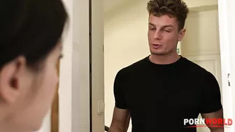 Description: Dark haired hottie Sophie Weber is enjoying some time in her jacuzzi bath armed with a glass dildo! She makes so much noise that her neighbour Matthew hears the commotion while trying to film a fitness video for his online brand. He heads over to Sophies to complain about the noise when she answers the door in some sexy white lingerie and a sheer robe. Matthew offers to show Sophie his set up and when they get back to his apartment this slutty babe comes onto him taking out his cock! She sucks on his big dick and they move around his apartment while Sophie gets her pussy and ass slammed! Once she has been fucked in all sorts of positions Sophie waits with her tongue out ready to take Matthews cum in her mouth!