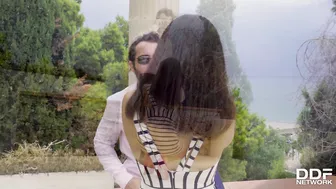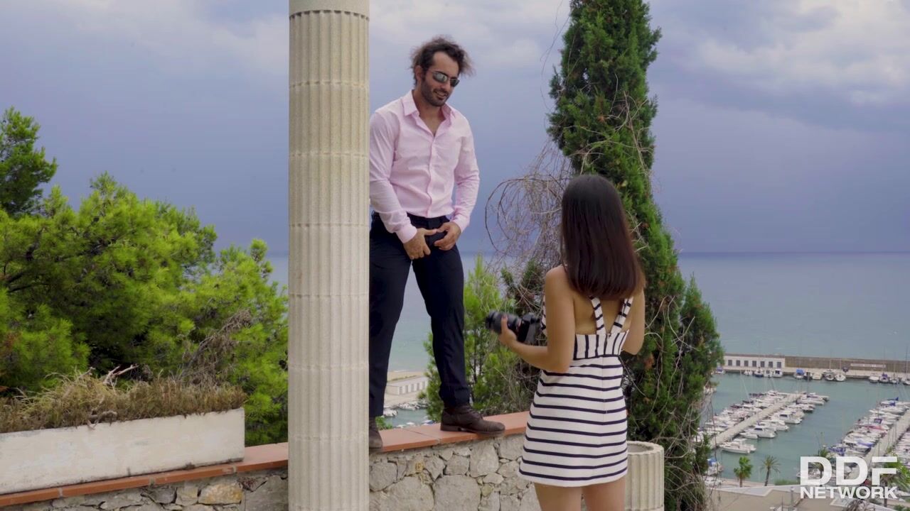 Description: Please welcome the absolutely breath taking hottie Ginebra Bellucci to our valued DDF Network team. This dream girl with long brunette hair and beautiful brown eyes cant wait to seduce todays photo model Miguel Zayas in the outdoors. The curvy glamour babe from Spain touches his chest and feels his enormous dick getting harder and harder while she keeps taking pictures of him. Soon she takes that massive cock out of his tight pants and slides his shaft deep down her throat to give him the blowjob of his life.She takes off her hot skin tight dress and lets him touch her natural tits play with her hard nipples and kiss her neck. Watch him finger her shaved pussy underneath her lingerie before that absolutely mind blowing young milf continues sucking his big hard on. We get to see her peach like butt from behind as she kneels in front of that gentleman with his enormous dick in her insatiable mouth. Finally he blows a big load of cum into her mouth which runs all over her lovely titties.