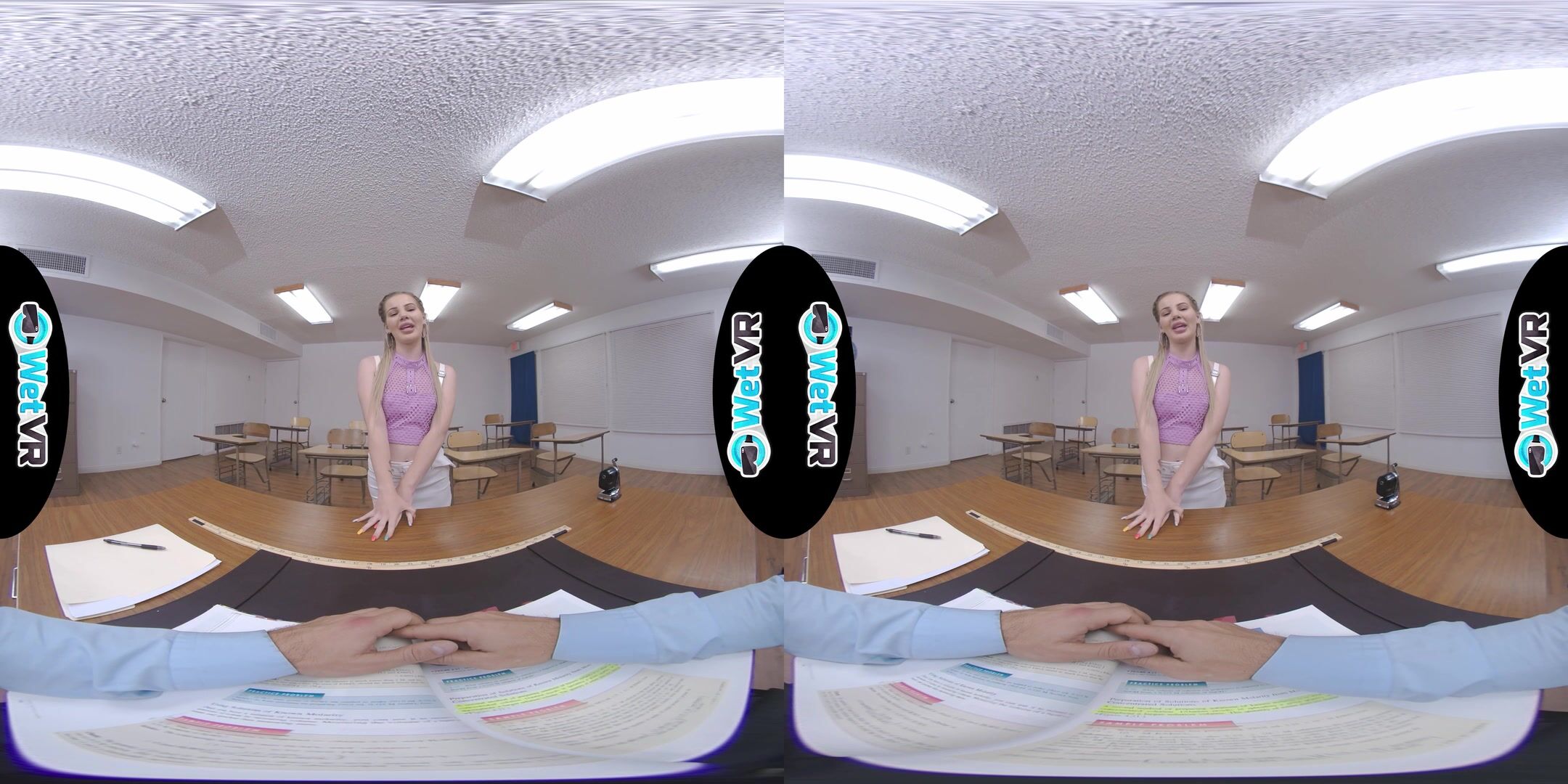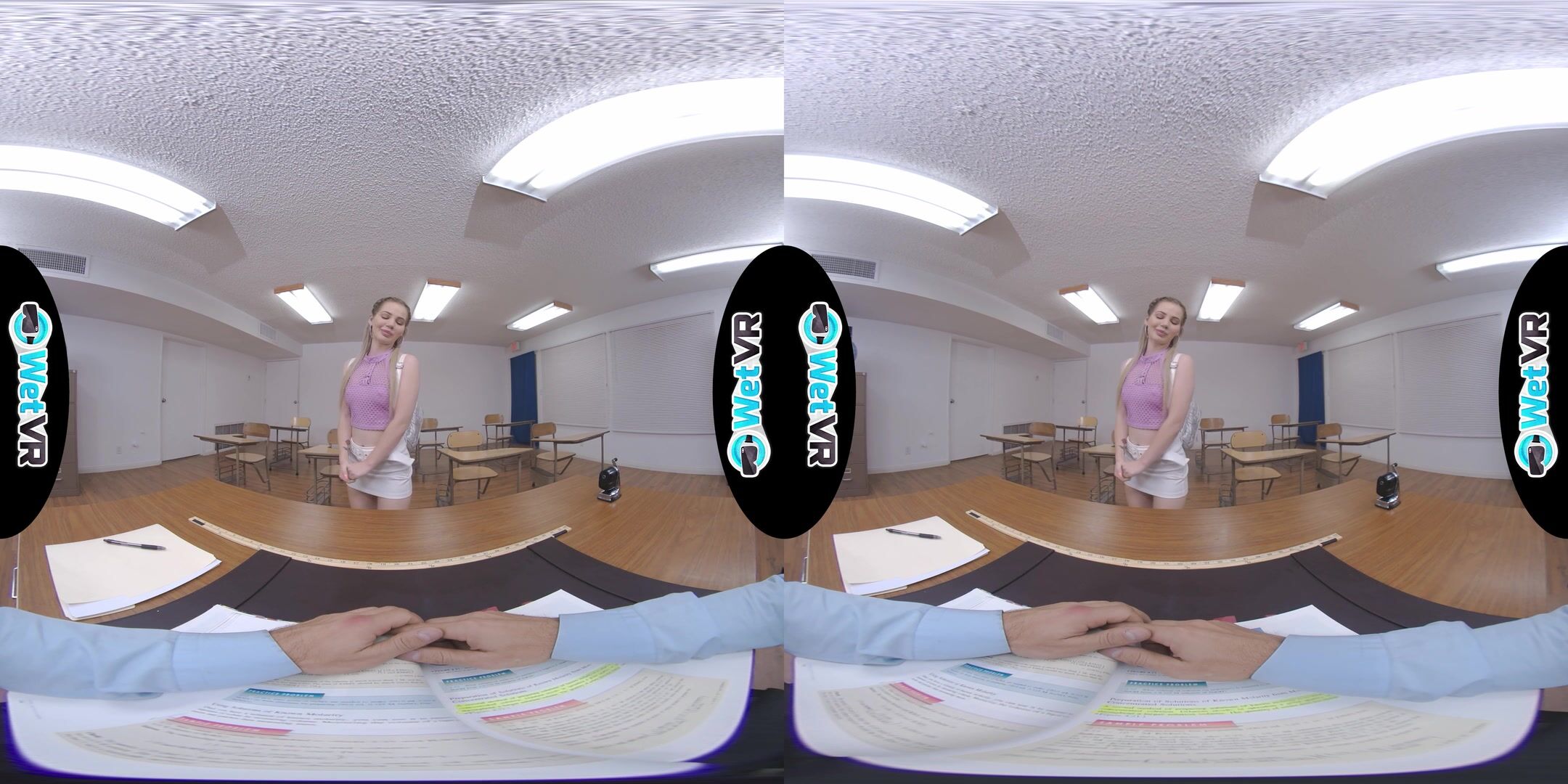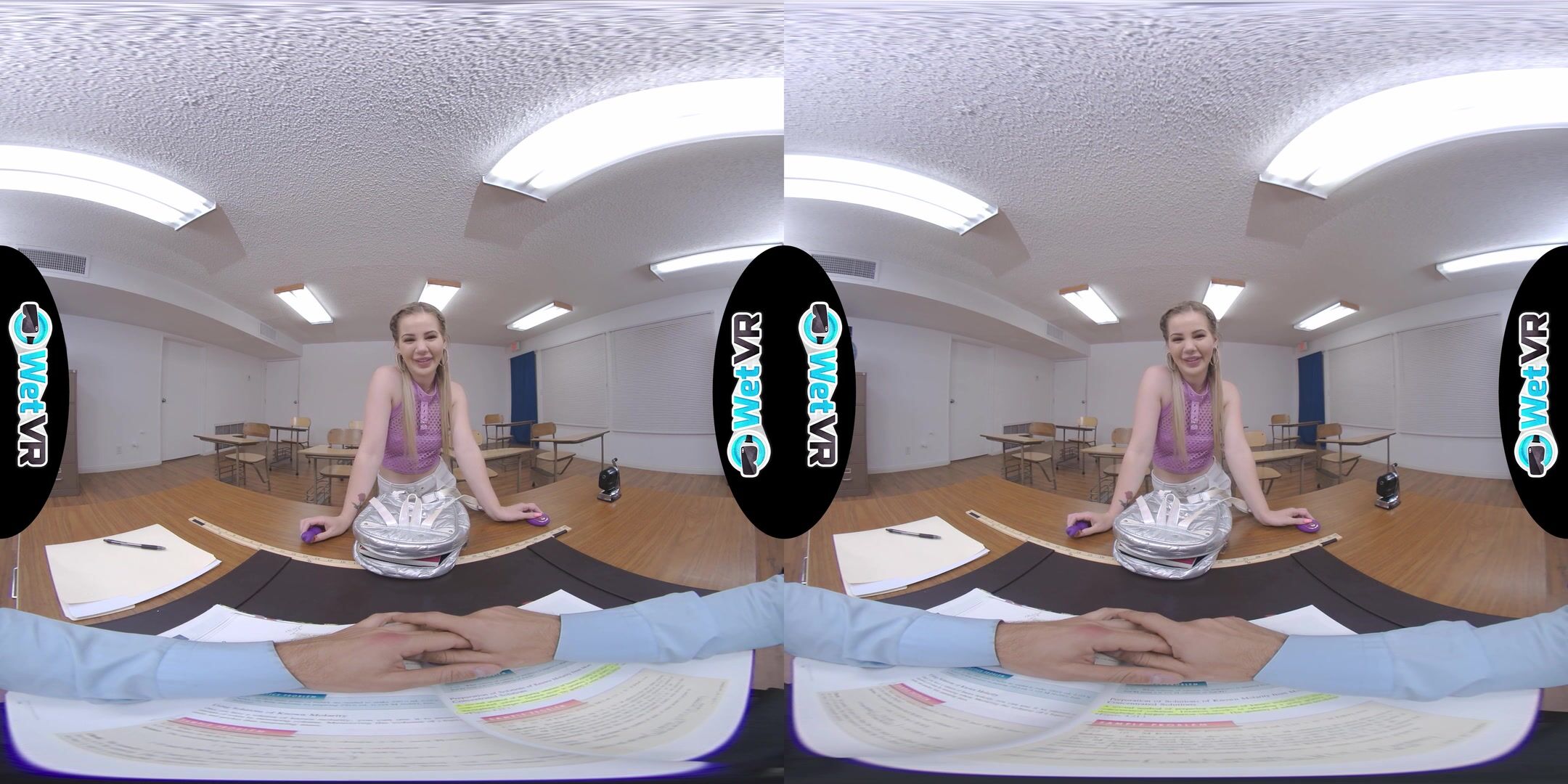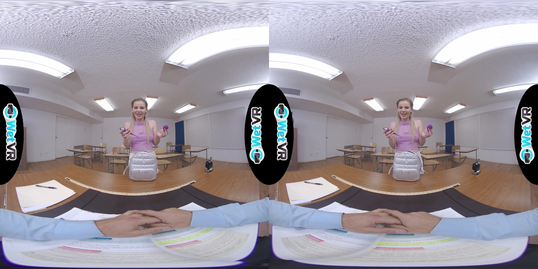Description: Bella gives her teacher a vibrator show to make up for her bad behavior in class.