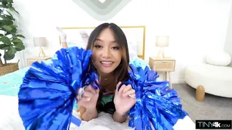 Description: Jade Kimiko dresses up as a sexy cheerleader and celebrates Halloween with candy and a big cock!