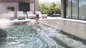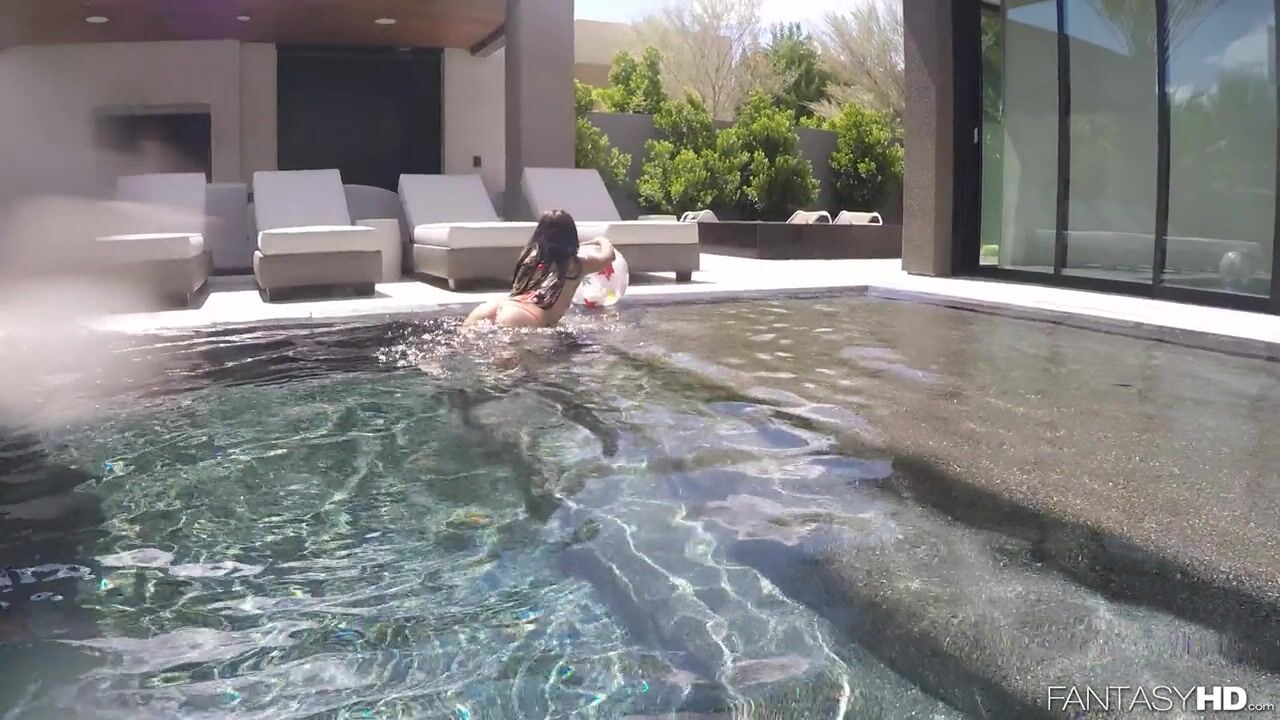 Description: Young girl splashes around with her friend in the pool before sucking and fucking him.