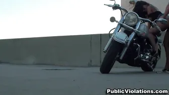 Description: This motorcycle loving bitch sucked me up. After we took a long ride cross country on this random rooftop parking structure! SUCK IT BITCH.
