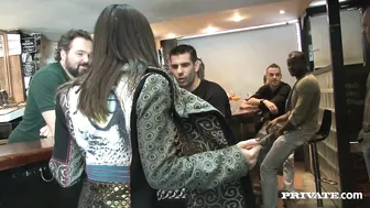Description: Alice Ax walks into a bar where several men are already milling around with drinks. She exposes her body to one of the guys and soon he s going down on her pussy. As more guys join the action she gets to her knees and sucks their dicks. Before it s over she has sucked and fucked every man there.