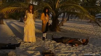 Description: On the tropical island Angel Dark is alone with the captain of the pirate ship. He s feeling up her tits and she s stroking his cock at the same time. She gives him a nice blowjob and then he screws her pussy from behind. She rides with his dick in her ass next and then strokes some cum from it.