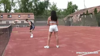 Description: Asia Devil and Dominica Dolce started taking tennis lessons together so that they could meet hot guys. Little did they know it would be their tennis coach that would show their pussies how to play. In this threesome shower scene watch Dominica go ass to mouth as she tastes Asia off her coaches cock.