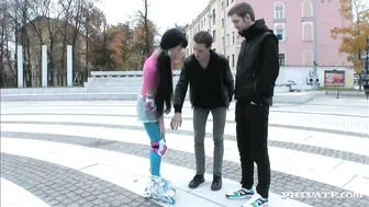 Description: Regina might not be all that comfortable on roller skates but she sure knows what to do with a pair of huge cocks suck them take them up her butt and have them cum all over her perfect ass!
