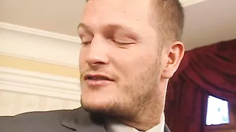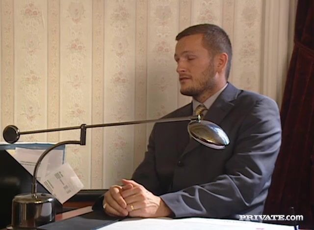 Description: Daniela chats with a man in the office before getting into a threesome with two guys while other girls watch. After kneeling between them and sucking their dicks she mounts a cock and rides it. The men double penetrate her body and she moans while taking the big thick cocks inside of her.