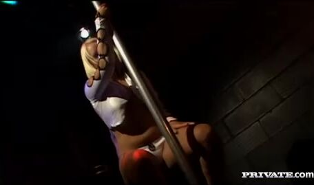 Description: Amber Leigh dances in the strip club and Ivana is out on the street asking a man to come watch and fuck her later. She strips down and works the pole like a professional and later she gives a guy a lap dance. She sucks his cock deepthroat style and they fuck on the couch until he cums on her ass.
