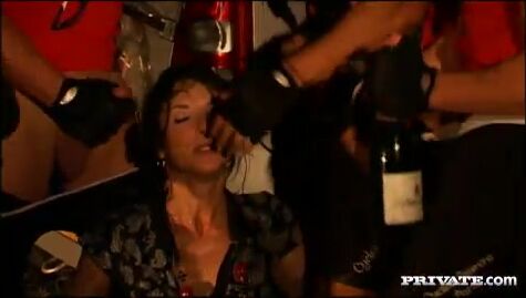 Description: Tiffany Hopkins is in the middle of a bunch of guys and everyone is drinking as she sucks on their cocks. The guys are all beating off as they wait for her to come suck them next. Before too long she is getting showered by cum and winds up looking like a bukkake queen kneeling on the grass.