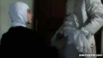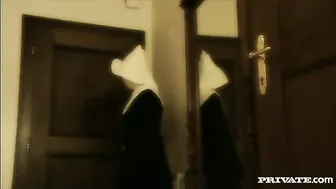 Description: Casonova uses his charm on a nun and warms her into fucking by eating her tight shaved pussy. Sharka Blue the nun can no longer resist and she takes his cock deep to her tonsils making him hard and ready to fuck! She rips off her clothes and takes a sideways pussy pounding from this hung stallion before letting him blast her ass. This nun can fuck! She gets on top faces away from him and slides her butt up and down his hard cock taking him deep in her ass. While this is going on another nun watches from outside rubbing her pussy and masturbating as Sharka is slammed from behind. To climax he finishes by pulling out of her tight pussy and lathering her with the juice of an explosive cumshot as the other nun continues to masturbate.