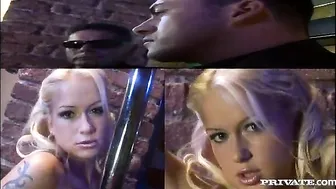 Description: Two men enter a secret club where the sexy Stacy Silver is performing a tasteful pole dance by rubbing her pussy on the pole. She takes two men backstage for a private show that begins with her being spit roasted. Then she lays on her back and has her ass hole caved in by a huge cock as her big bouncy tits are played with. She bends over so that she can take their dicks deeper in her ass as she is fucked in the mouth. Things finish with her head down and her ass up as the men take turns to pound her pussy and cum inside her.