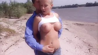 Description: Sandra Iron arrives on the beach where a man awaits her. They start making out right away with him feeling up her nice tits through her clothes. He fucks her tits while she is giving him a blowjob and then he fucks her pussy from behind. Her big tits bounce as he screws her and finally cums on her.