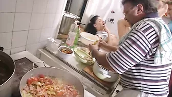 Sexy Brunette Vanessa Gets Laid in the Kitchen While Some Guy Cooks