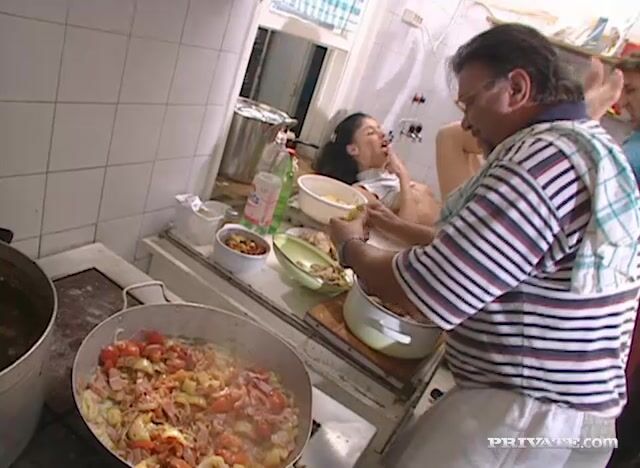 Description: Vanessa Desiree is in the kitchen while one guy cooks and another kisses her sexy tight ass. He hoists her onto the counter top and starts fucking her pussy while the other guy continues to cook. He penetrates her tight ass next and then feeds his cock to her mouth. She takes his cum on her face.