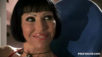 Description: Valentine Demy is a MILF who is just like any other exercise machine at the gym. Two studs are working out with free weights when they decide to use Valentine for some cardio work as they double penetrate her pussy and ass before watching her squirt and spraying cum all over her body!