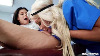 Description: Hot brunette India summer is in good hands! Bombshell doctor Nicolette Shea is giving her a thorough body examination. After carefully oiling up India s pussy Dr Shea is finally ready to use her new highly technological tool a fuck machine. It doesn t take too long before India starts to moan in pleasure. Nicolette makes good use of her fingers and stimulates India s clit until she squirts. Luckily Nicolette s goggles protect her from the storm. Things get even steamier. The women trade places on the chair and India has her chance to explore Nicolette s depths. The scene culminates with depraved scissoring session. A nice reminder that you can t really trust a doctor in a porn scene but you can thrust them. Get it