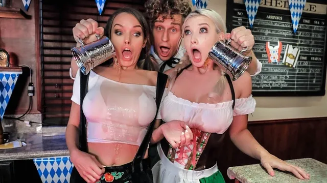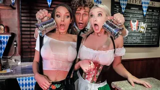 Description: Leather pants sausages and big jugs... no wonder Oktoberfest is the best holiday of the year! Michael Vegas shows up to the festivities excited for a peek at the cute frauleins and he s not disappointed by pigtailed blonde babes Emily Right and Pristine Edge! Michael immediately starts misbehaving spilling his suds over their big tits and peeking up their skirts but when Emily catches a glimpse of Michael s big sausage she forgives him because she wants a taste of his thick meat! These horny babes can t get enough of his dick and each other s pussies before they share Michael s cum making this the best Cocktoberfest ever!