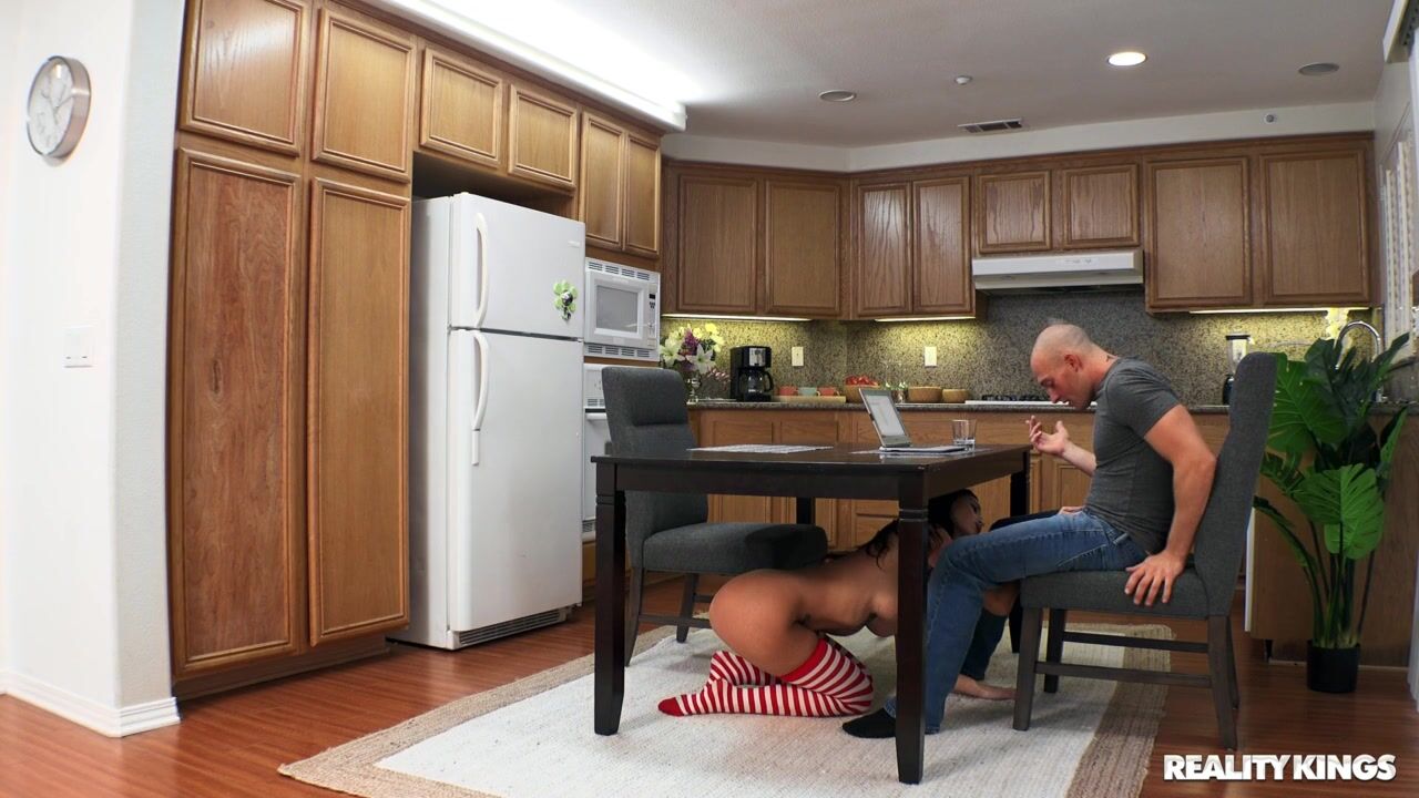 Description: Azul Hermosa is looking to have a little bit of sexy fun with Zac Wild but hes too busy working to even notice the perfect pair of tits staring right at him! Azul doesnt let her mans focus on in his work deter her however stripping naked with the exception of her thigh high socks and crawling under the table and over to Zacs lap! Once Azul wraps her lips around Zacs cock he quickly sets his work aside and gives her what she wants!
