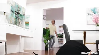 Description: Emma Hix is a blonde bombshell who knows how to make her body work. In a sexy black and white outfit she shows off her moves throwing her ass back and arching her back with perfect come fuck me rhythm. When Michael Vegas sees her booty up in the air she can t resist and has to grab a handful of her tight round ass. Emma s feeling flirty so she decides to give Michael a lap dance letting him tear open her tearaway pants to reveal her slutty fishnet stockings underneath. Soon Michael is three fingers deep massaging her pussy while she bends over the arm of the couch. Emma drops to her knees and lets Michael stuff his cock and balls into her mouth greedily drooling all over them as he holds her ponytail before tossing her back onto the couch for the deep dicking that her dance moves deserve. Emma gets railed by Michael long and hard until she s shaking with pleasure and covered in cum.
