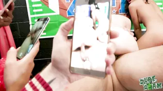 Description: College football season is just heating up and there s nothing better than a little pre game fun in the dorm room. While waiting for the game to start Vienna Black and her friends are having some fun posing for some selfies while shaking their pompoms and their asses! Vienna gets the party started by trying to show off her twerking abilities! Vienna is shy at first but doesn t take her or her friends Miley and Alex More long before they strip out of their booty shorts and get butt naked! Before long Vienna and her frisky friends are down to fuck as they take turns sucking some big dick! Luckily for these college cuties Tony Martinez has gotten rock hard from seeing their bare pussies on full display! Soon everybody forgets about the game because the real show is watching these sexy sluts get on all fours and have some naughty fun without having to leave their dorm!