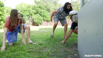 Description: Miranda Miller and Vienna Black have found a nice secluded waterfront area to finally escape for some naughty fun. They kiss and trace their hands along each other s bodies eager to make their partner moan and squirm in pleasure... Until Charlie washes up on shore like a perverted beached whale jacking off to this impromptu lesbian show and ruining the whole thing! In today s episode the Stabbin crew acts on some intel to sneak on to a nearby set and check out how the professionals film a full scene. They spot the cute yet sloppy Alex Blake slobbering and drooling over Ricky Johnson s hard cock doing her best to shove it deep down her throat. The gang sneaks through the set as Alex gets pounded senseless squirting over the cameras during orgasm after orgasm... But something tells me the seductive Alex and charismatic Ricky will be pleased with the crew crashing in on their content.