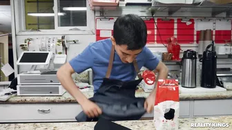 Barista Big Naturals Big Tits Worship Black Hair Blouse Blowjob Double Caucasian Cum Shot Customer Doggystyle Standing European Face Fuck Face Sitting Fuck n Lick Handjob Huge Tits Indoors Innie Pussy Missionary Multiple Cum Cleanup Natural Tits Outie Pussy Reverse Cowgirl Side Fuck Spanking Thong Work Fantasies