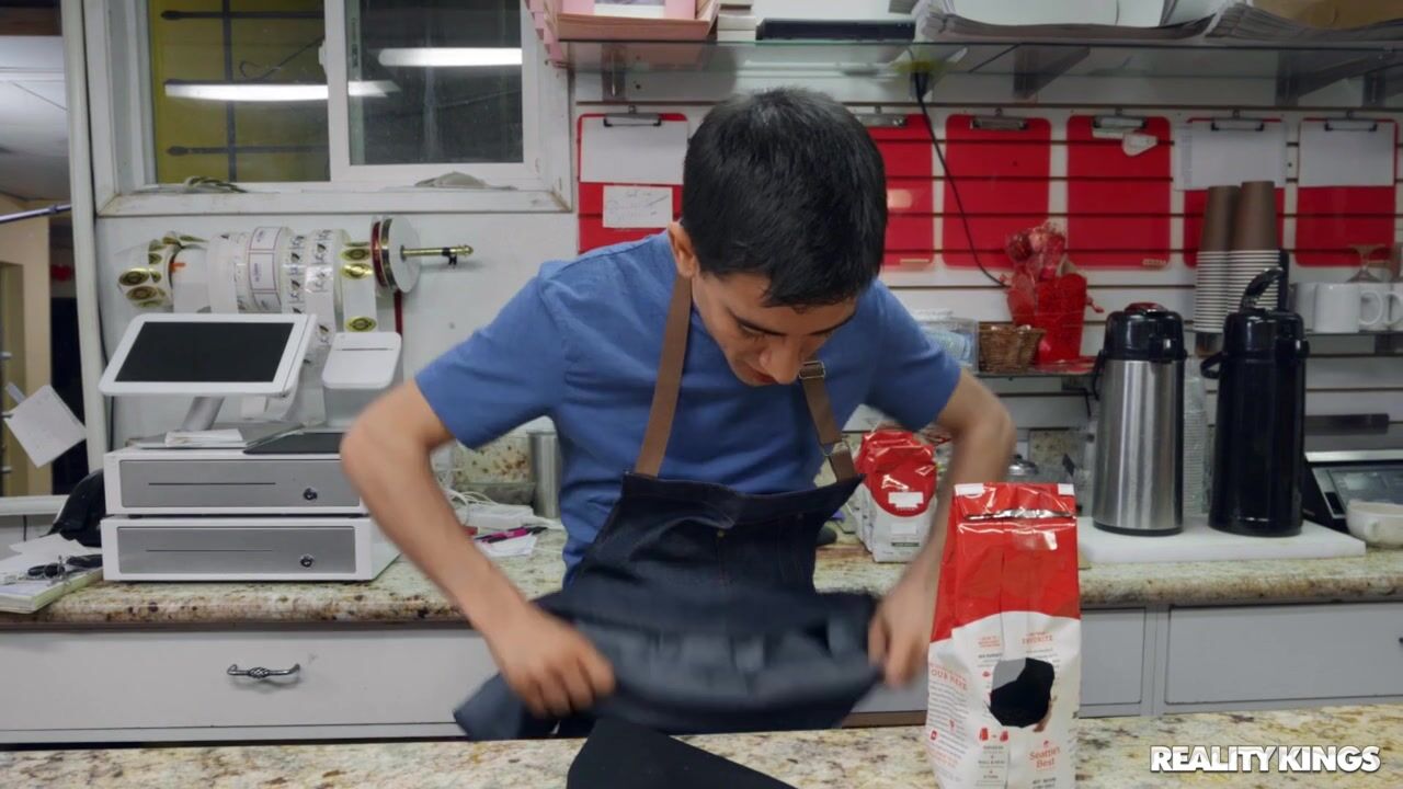 Description: Jordi is working as a barista under the watchful management of hot MILF Dana DeArmond. Little does Dana know Jordi has an odd habit of grinding the spare coffee beans with his dick. Jordi s behavior catches up to him when he makes a mess of sexy Layton Benton s drink order. Dana and Layton yell at Jordi and Dana catches him with a bag of coffee beans hanging from his dick! Not wanting to fire Jordi before the lunch rush Dana decides that the best way to get her horny barista under control is to drain his cock. Layton joins in on the fun because... well it s not like she has anything better to do while waiting for her drink. Some lil humpers have all the luck!