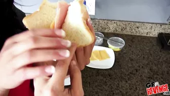 Description: My sexy girlfriend Vienna Black was in the kitchen fixing herself up a snack. She was making a sandwich and wearing a hot red apron. Only I didn t understand why she had to wear it while making a sandwich. My girlfriend s funny and cute like that but all