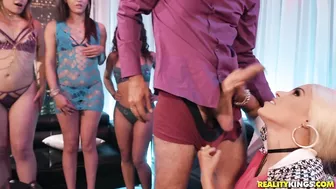Description: Luna Star is the owner of the most exclusive brothel in town purveyor of every fantasy imaginable with her elite team of girls and the sexiest of them all. Today s client is businessman Steve Holmes who can t decide which of Luna s beautiful girls he wants...because he wants Luna herself! His briefcase full of cash can t sway her but the sight of a powerful man brought to his knees by desire for her makes Luna agree to let the hung silver fox bury his tongue and then his big cock in her tight ass. The Latina babe calls the shots as her girls watch her take that huge dick and squirt all over Steve s face! All Luna wants from Steve is his big load on her face so once she gets it she has her sexy employees show him the door.