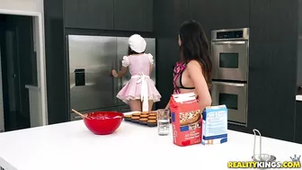 Description: Melissa Moore is baking cupcakes for her sorority bake sale when Mary Moody comes to show her the skimpy outfit shes planning on wearing to help boost sales. When Mary sees that Melissa is only wearing underwear under her apron she offers to help her out but she has no intention to actually bake. She makes her intentions known by slapping Melissas ass leaving a nice flour handprint! Then Mary bends over and teases her tight juicy pussy to her sorority sister! When Melissa asks Mary for help decorating the cupcakes Mary does exactly as instructed but decorates her tits instead of the baked goods! Of course Melissa cant help but wrap her luscious lips around Marys nipple as she gets a taste of the whipped cream! Then its Melissas turn to offer something yummy for Mary to lick her dripping wet pussy! While the cupcakes are baking in the oven the two slutty sorority sisters take turns fucking each other on the kitchen counter!