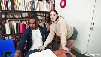Description: Lucy Lotus doesn t do too much reading so when she films the library for her college day in the life vlog she s more interested in getting shots of her big ass and flirting with athlete Kaby Snow. Kaby is annoyed by the interruptions while he s trying to study... until Lucy puts her booty in his face. He can t study with this big boner but Lucy sits on it then sucks him in the stacks. Lucy s fans are going to love this vlog almost as much as she loves Kaby s huge cock!