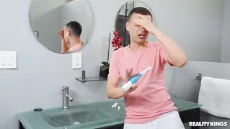 Description: Mini Stallion relaxes in the tub reading a magazine until she s rudely interrupted by her roommate Johnny The Kid brushing his teeth. Johnny apologizes profusely for walking in on her but Mini doesn t mind as long as he s willing to make up for it!