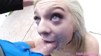 Description: Tiffany Watson shows up in a skin tight hot pink dress but no bra or panties so you know shes ready for action! This blonde plaything moans in pleasure as her asshole takes a licking. When her lips wrap around cock she turns into a total slut. This eager babe takes a hard face fuck and you can hear her gagging as she keeps pushing her mouth to its limits. Spit goes everywhere as she tries to work cum out of a huge cock. Tiffany gets her oral creampie reward which she happily swallows whole!