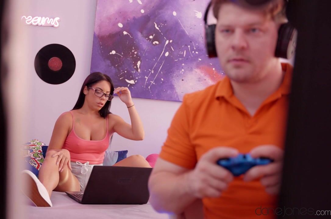 Description: Busty Italian Megan Fiore is vying for her boyfriends attention but Michael Fly is too busy playing his video game to notice how horny his girlfriend is! The bespectacled beauty strips completely naked which seems to do the trick and Michael dives tongue first into her dripping wet pussy before sliding his long thick cock inside. Following an intense side fuck on the bed the beefy hunk penetrates Megan from behind in doggy position and then the raven haired nymph swallows up his throbbing erection in a sloppy blowjob. Next Megan sits on Michael s lap and rides him cowgirl style until the well hung stud flips her over and pummels her hard in missionary position while helping himself to her big fake titties! When Michael is about to cum he pulls out just in time to blow a load all over his girlfriends satisfied snatch and then its time to get back to some gaming!